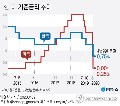 앞서 금통위는 지난달 16일 임시 회의를 열어 기준금리를 사상 최저 수준인 연 0.75%로 0.50%포인트 전격 인하했다.