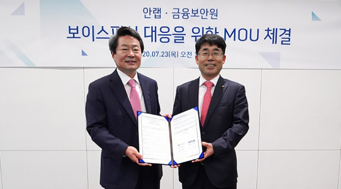 [디지털투데이 신민경 기자] 금융보안원은 안랩과 보이스피싱 예방과 대응을 위한 업무협약(MOU)을 체결했다고 23일 밝혔다.