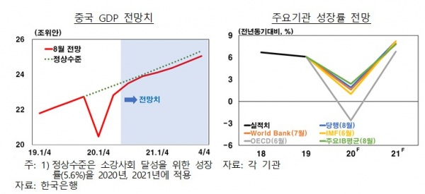 한국은행은 중국 경제가 향후 회복 흐름을 유지할 것으로 전망하면서 한국의 대(對)중국 수출에도 긍정적인 영향을 미칠 것이란 전망을 내놨다.