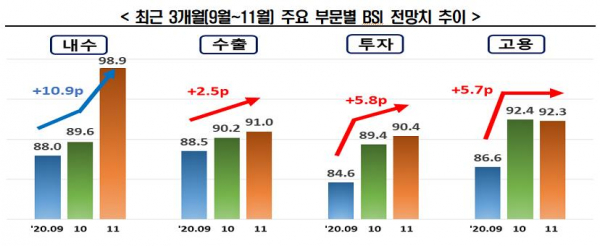 10월 실적치는 98.7로 전월 대비 14.7포인트 상승했다.