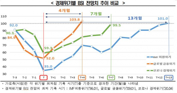 추광호 한경연 경제정책실장은 "기업 체감경기는 글로벌 금융위기 때보다는 느리지만 국제통화기금(IMF) 위기 때보다는 빠르게 회복하고 있다"면서 "종합 경기 전망은 개선됐지만, 수출 체감경기 회복이 더뎌 이와 같은 추세가 이어질지는 미지수"라고 말했다.