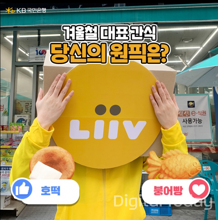 리브맨은 얼굴에는 리브 마크를 달고 있고 추리닝을 입고 있다. 리브맨은 KB국민은행 공식 페이스북에서 고객들에게 선택을 강요한다. 그 선택은 금융상품이 아니라 ‘호떡’과 ‘붕어빵’ 중 어느 것이 더 좋은가에 대한 것이다. 12월 4일 KB국민은행은 리브맨을 등장시켜 겨울 호빵 중 ‘팥’과 ‘야채’ 중 어느 것이 좋은지 고객들에게 물어봤다. 이에 100여명이 넘는 사람들이 댓글을 달면서 논쟁을 벌였다.