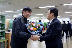 韩国邮政业务本部长走访春川邮局 表彰阻止电诈损失扩大的员工