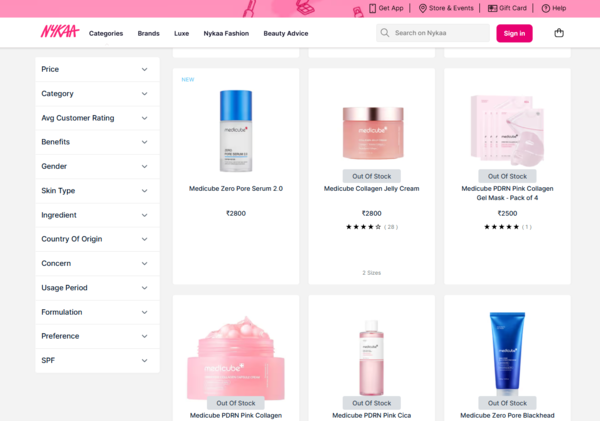 据业内消息,APR近期已与印度美妆平台Nykaa达成合作,并开始销售MediCube产品。Nykaa是印度知名美妆零售平台,同时布局线上与线下渠道。APR希望借助Nykaa的渠道网络,加快在印度市场的落地。