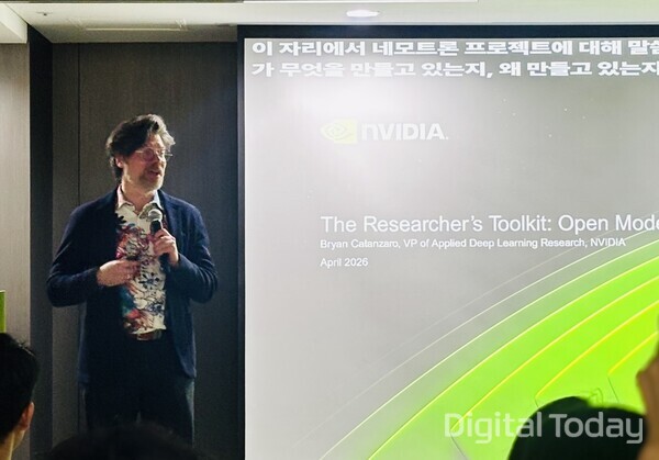Bryan Catanzaro (브라이언 카탄자로), vice president of applied deep learning research at Nvidia, said at the "Nemotron Developer Days Seoul 2026" event in Seoul on Monday that "Compute is intelligence" and that "A faster model is a smarter model." The message was framed around the idea that future AI advantage will be determined not by single-chip performance competition but by system efficiency spanning four stages: pre-training, post-training, inference and agents.