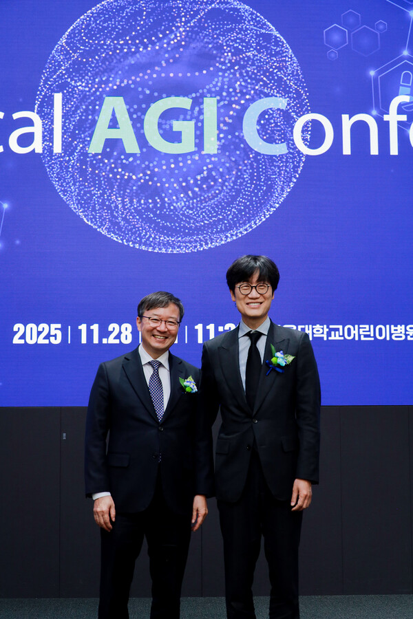 Naver and the hospital announced the medical LLM Kmed.ai at the Medical AGI event on Nov. 28 at the hospital in Seoul. Naver Chairman Lee Hae-jin and CEO Choi Soo-yeon attended. Vice Minister for Science and Technology Bae Kyung-hoon, Second Vice Minister of Health and Welfare Lee Hyoung-hoon and Hospital Director Kim Young-tae also attended.