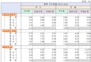 Finance 電子金融事業者の決済手数料率、小幅低下 値下げ競争はなお限定的 韓国金融監督院が公表した電子金融事業者の決済手数料率は、カード平均1.98%、プリペイド平均1.74%と小幅に低下した。公示対象拡大後初の集計だが下げ幅は限られ、零細加盟店向けでは簡便決済3社の差が鮮明になった。