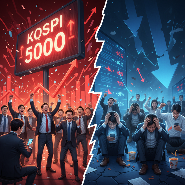 KOSPIは22日の取引時間中に5019.54まで上昇し、初めて5000台に乗せた。半導体やAI関連株を中心とした外国人の買いが相場を押し上げる一方、下落を見込んでインバースETFに資金を振り向けた個人投資家は損失拡大を強いられている。