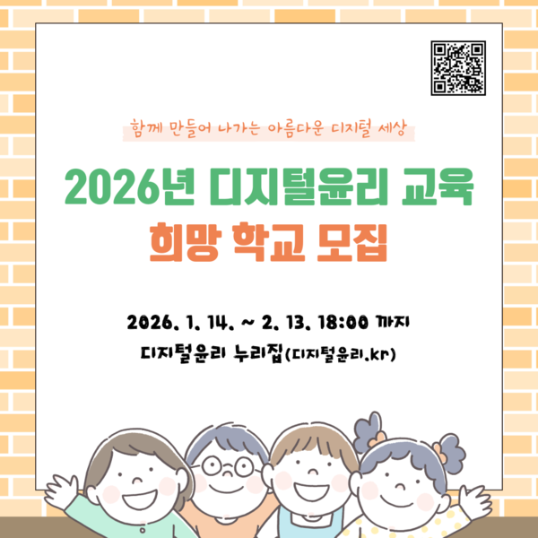 韓国知能情報社会振興院(NIA)は1月26日、2026年のデジタル倫理教育の実施を希望する幼稚園と小・中・高校の募集を開始した。約1800校・学級、10万人を対象に、レベルに応じた教育プログラムを無償で提供する。