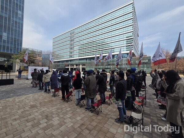 全国化学繊維食品産業労働組合(化繊食品労組)NHN支部は3月4日、京畿道城南市盆唐区のNHN本社前で抗議集会を開いた。子会社NHN Eduの人員削減を巡り、NHN本社が法人分離を理由に雇用責任を回避していると批判し、3者による雇用安定協議体への直接参加などを求めた。