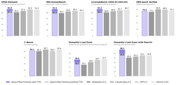 同社によると、Qwen3-Max-Thinkingは事実に基づく知識処理、複合推論、指示追従、人間の選好との整合性、エージェント機能といった複数の中核領域で性能を高めたとしている。