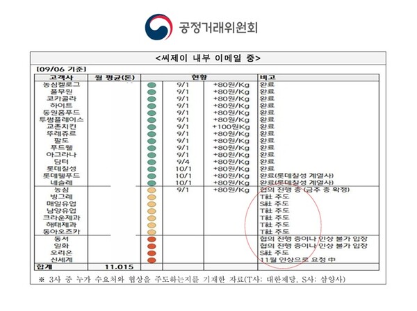 課徴金の内訳は、CJ CheilJedangが1506億8900万ウォン、Samyangが1302億5100万ウォン、Daehan Sugarが1273億7300万ウォン。
