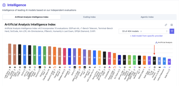 TrillionLabsは2月19日、既存モデル「Tri 21B」をベースに強化学習で推論性能を高めた「Tri 21B Think」を公開した。Artificial Analysis(AA)のリーダーボードでは30位以内に入ったとしている。