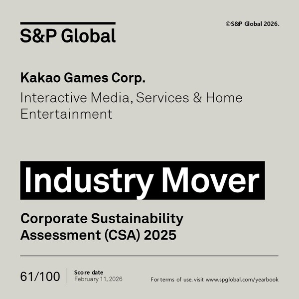 KakaoGamesは26日、S&P Globalが公表した2025年の企業持続可能性評価(CSA: Corporate Sustainability Assessment)で、「インダストリー・ムーバー」に選出されたと発表した。
