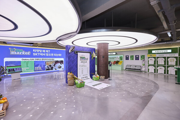 2月27日に現地を訪れると、館内には実際のマートのような雰囲気を取り入れた体験空間が広がっていた。SKTは、来場そのものを楽しめるポップアップとして「SKT S26マケット」を企画。SKT関係者は「MZ世代の間で、季節ごとの話題の食やイベントを追いかけるトレンドを反映した」と説明した。