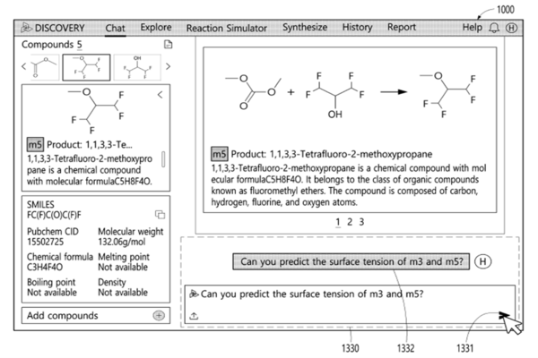 特徴の1つは、非定型文書に含まれる分子構造を直接指定できる点にある。また、「m3」「m5」といったラベルやタグを用いた対話形式で、実験結果を呼び出せる機能も備える。