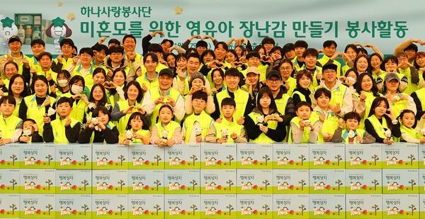 Hana Financial Groupは1月18日、未婚の母子世帯を支援する社員ボランティア活動を実施したと発表した。社員と家族約100人が参加し、乳幼児向けのガラガラを手作りしたほか、育児用品8種を詰めた「幸福ボックス」も用意し、関連施設に届ける予定だ。