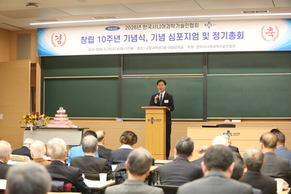 科学技術情報通信部のク・ヒョクチェ第1次官は25日、高等科学院で開かれた韓国シニア科学技術人協会の創立10周年記念シンポジウムに出席し、協会の節目を祝った。会場には全国から約80人のシニア科学技術人材が集まった。