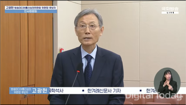 放送メディア通信審議委員会の委員長候補、コ・グァンホン氏は1日、国会の科学技術情報放送通信委員会が開いた人事聴聞会で、合議制の立て直しと透明な審議運営を進める考えを表明した。前体制下の制裁処分が相次いで訴訟で敗訴した点を批判するとともに、約17万件に上る未処理案件の早期解消にも取り組む方針を示した。