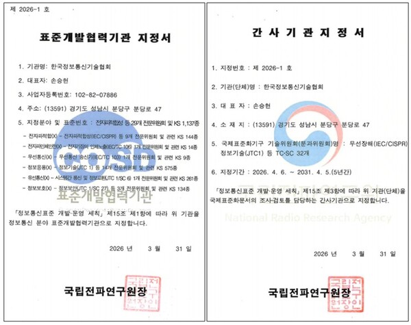 韓国情報通信技術協会(TTA)は4月6日、科学技術情報通信部傘下の国立電波研究院から、情報通信分野の標準開発協力機関(COSD)およびISO/IEC JTC 1の国際標準化幹事機関としての指定期間が2031年4月5日まで5年間延長されたと発表した。