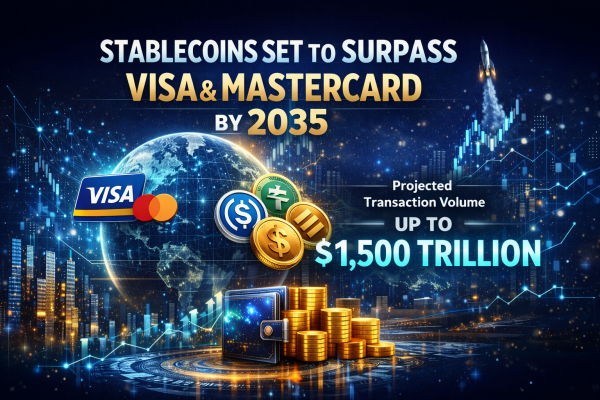 足元の拡大ペースも速い。レポートによれば、2025年の世界のステーブルコイン取引規模は33兆ドルを超え、VisaとMastercardの合算処理額を上回った。こうした流れが続けば、2035年を待たずにオンチェーン取引件数が既存のカードネットワークを追い抜く可能性もあるとしている。