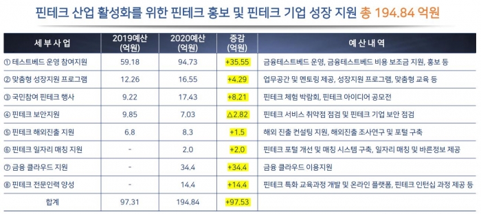 - 올해 핀테크 예산 184억...테스트베드 비용 줄고, 해외 진출 지원 늘고