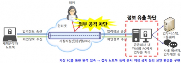 이처럼 전례 없는 광경이 연출되는 것은 금융당국의 규제 완화 조치 때문이다. 지난달 말 금융위원회는 "금융사가 업무연속성을 유지하도록 일반 임직원의 원격접속을 통한 재택근무를 허용한다"고 밝혔다. 코로나19로 인해 비상상황이 발생해도 금융서비스를 끊김 없이 제공토록 하기 위한 조치다. 금융당국이 전산센터 직원 외의 본점 직원들에게까지 망분리의 예외를 인정한 것은 지난 2013년 규제 도입 이후 처음이다.