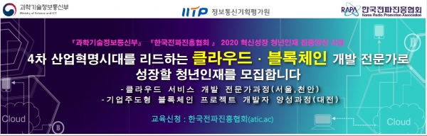 이번에 실시하는 교육은 ‘클라우드 서비스 개발 전문가 양성과정’과 ‘기업주도형 블록체인 프로젝트 개발자 양성과정’이다. 클라우드 과정은 24명씩 2개반(총 48명), 블록체인 과정은 24명 1개반(총 24명) 선별해 서울, 천안, 대전에서 실시될 예정이다.