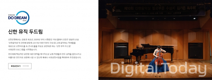 또 신한은행은 2019년 하반기부터 음악을 공부하는 국내 중·고등학생을 대상으로 신한아트홀 내 콘서트홀을 무료로 대관하는 신한뮤직 두드림 프로그램을 운영하고 있다. 그러나 이 프로그램은 코로나19 여파로 2월부터 중단됐다. 지난 5월 8일에는 6월 공연 역시 코로나19를 이유로 진행하지 않기로 결정됐다고 공지됐다.