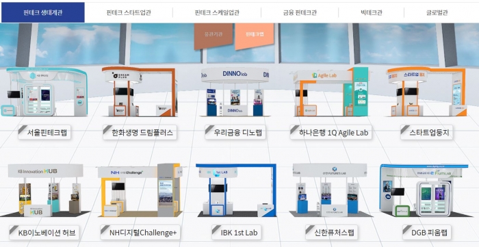 30일 온라인으로 진행되고 있는 '코리아 핀테크 위크 2020'의 기업 전시관 중 '핀테크 생태계관'에선 금융회사들이 운영 중인 핀테크 랩의 국내외 현황이 소개됐다.