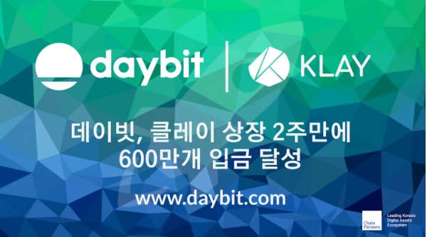 [디지털투데이 황치규 기자]체인파트너스(대표 표철민)는 자사가 운영하는 가상자산 거래소 데이빗에 카카오 계열사 그라운드X가 개발하는 클레이튼 블록체인에서 발행된 가상자산 ‘클레이’를 상장한지 2주만에 600만개 클레이가 입금됐다고 17일 밝혔다.