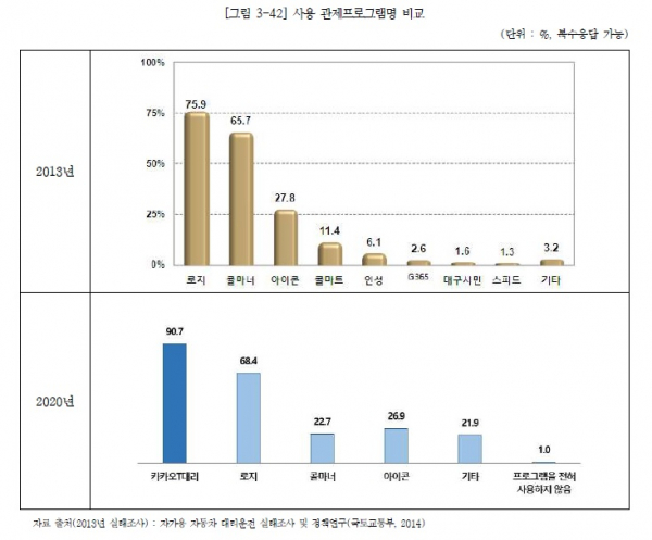 대리 기사들이 여러 프로그램을 중복해서 쓰는 점을 감안하더라도 카카오T 대리가 나온 후 기존 프로그램 사용 비율이 줄었다. 콜마너가 카카오모빌리티 종속기업이라는 점을 감안하면 카카오모빌리티는 서비스 출시 후 4년 여 만에 시장 지배적인 서비스로 부상한 셈이다.