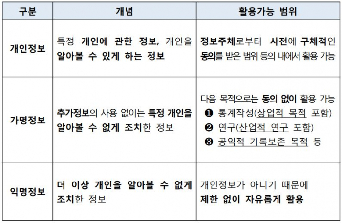 여기서 핵심은 기업이 이용할 수 있는 개인 신용정보 범위가 확대됐단 점이다. 금융과 정보통신 등의 산업군에 걸쳐 익명정보뿐만 아니라 가명정보까지 상업적으로 쓸 수 있게 됐다. 하지만 정부가 정작 가명정보의 범위를 어디까지로 설정할지 규정해놓지 않아 기업들로선 상품과 서비스 구상에 어려움을 겪었다.