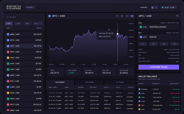2017년에 설립된 신세틱스는 주식, 금, 법정화폐 등 실물자산 가격을 따르는 합성토큰을 발행하고 거래할 수 있는 서비스를 운영하고 있다. 현재 신세틱스에서는 비트코인, 이더리움 등 다양한 암호화폐를 포함해 미국달러, 유로화, 엔화를 비롯한 법정화폐, 그리고 금, 은과 같은 귀금속, FTSE, 닛케이와 같은 주요 국가의 주가지수 등이 발행되어 거래되고 있다.