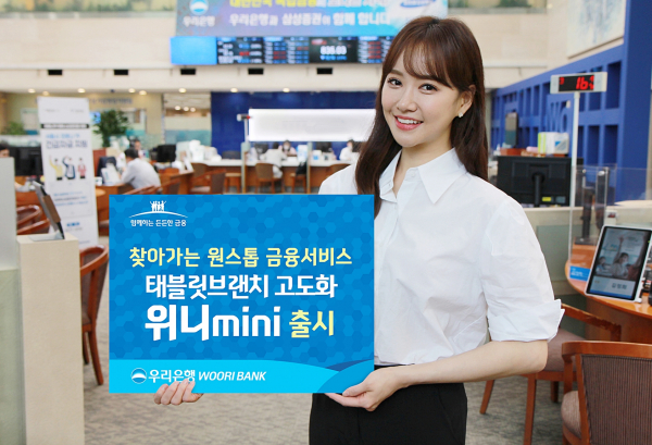 [디지털투데이 고정훈 기자] 우리은행은 고객을 직접 방문해 금융상품 가입 및 상담이 가능한 원스톱 금융서비스인 태블릿브랜치를 고도화한 ‘위니미니(mini)’ 를 출시했다고 21일 밝혔다. 지난 2016년 태블릿브랜치 도입 이후 변화된 금융환경 및 영업현장의 의견을 적극 반영해 시스템을 재구축했다는 설명이다.