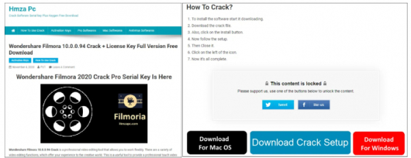공격자는 먼저 상용 소프트웨어 ‘크랙(Crack) 다운로드’로 위장한 피싱 사이트를 제작했다. 사용자가 유명 영상편집 및 그래픽 프로그램 제품명과 크랙 등 소프트웨어를 불법으로 다운받기 위한 키워드를 합쳐서 검색하면 해당 피싱 사이트가 검색결과 상단에 나타난다. 사용자가 피싱 사이트에서 다운로드 버튼을 누르면 악성 압축파일이 다운로드된다