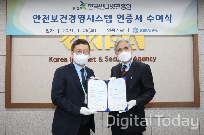 [디지털투데이 강진규 기자] 한국인터넷진흥원(KISA)은 국제수준의 안전보건경영시스템 체계 구축을 인정받아 안전보건경영시스템 국제표준(ISO45001) 인증을 획득했다고 26일 밝혔다.