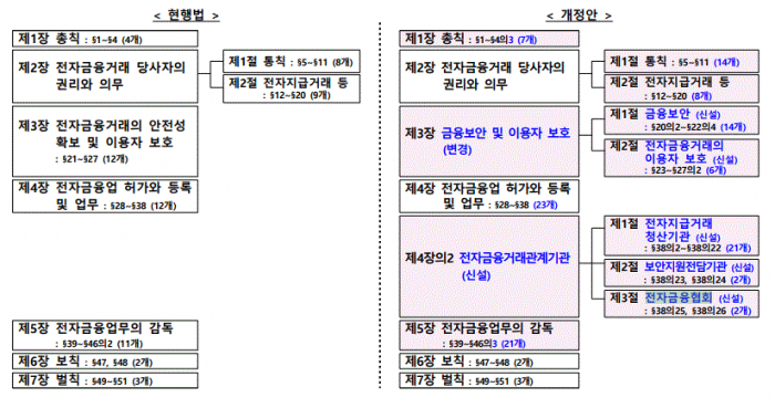 앞서 지난해 11월 윤관석 더불어민주당 의원(국회 정무위원장)은 전자금융협회를 특수법인으로 설립하는데 대한 내용을 새로 포함시킨 전금법 개정안을 대표 발의한 바 있다. 개정안에선 전자금융협회의 설립과 금융보안, 보고, 검사, 조치 등 준용 규정을 명시하고 있다.