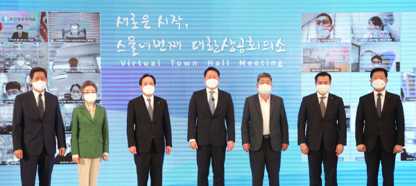 대한상의는 29일 서울 중구 상의 회관에서 딱딱한 ‘취임식’ 대신 ‘비대면 타운홀 미팅’을 열고 ‘스물 네번째 대한상공회의소의 새로운 시작’을 알렸다.