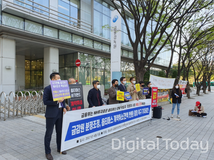 그러나 시민단체들과 피해자들은 NH투자증권이 ‘꼼수’를 부리고 있다고 반발하고 있다. 경제정의실천시민연합, 금융정의연대, 민변 민생경제위원회, 참여연대와 옵티머스펀드피해자모임 등은 5일 오후 서울 여의도 금감원 앞에서 NH투자증권을 규탄하는 기자회견을 열었다.