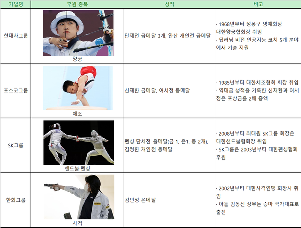 [디지털투데이 조믿음 기자] 2020 도쿄올림픽에서 우리 국가대표 선수단의 활약이 계속되고 있는 가운데, 이들을 지속적으로 후원해 온 기업들에게도 관심이 쏠리고 있다.