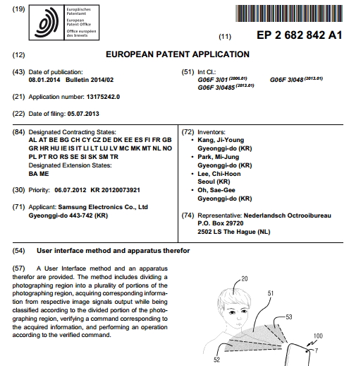 11일(현지시간) IT전문매체 씨넷(Cnet)은 삼성전자가 지난해 7월 유럽 특허청(EPO)에 출원한 동작인식 특허를 공개하며, ‘갤럭시S5’에 사용자의 얼굴위치에 따라 스마트폰 화면이 따라 움직이는 새로운 기능이 탑재된다고 보도했다.