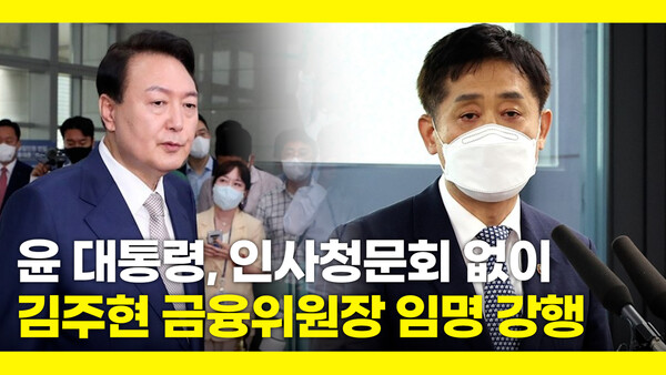 윤석열 대통령은 인사청문회를 거치지 않고 11일 김주현 금융위원장에 대한 임명을 재가하고 임명장을 수여했다.