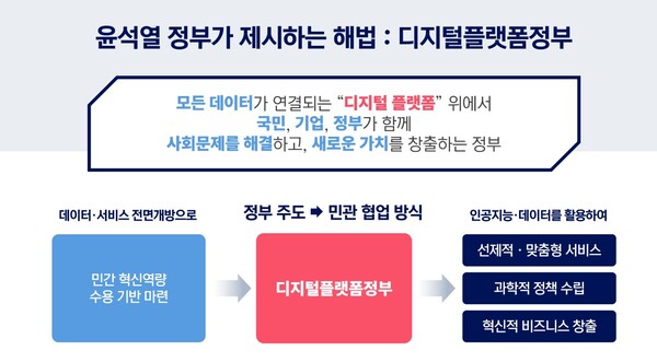 디지털플랫폼정부는 윤석열 대통령의 핵심 공약이다. 모든 데이터가 연결되는 디지털 플랫폼 위에서 국민, 기업, 정부가 함께 사회문제를 해결하고 새로운 가치를 창출하는 정부를 의미한다. 디지털플랫폼정부는 과기정통부와 행정안전부가 같이 담당한다.
