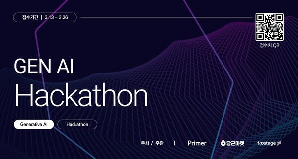 [디지털투데이 황치규 기자]스타트업 액셀러레이터 프라이머는 생성형 인공지능(AI) 분야 개발 대회 ‘젠에이아이 해커톤(GenAI Hackathon)’을 개최하고 오는 26일까지 참가자를 모집한다.