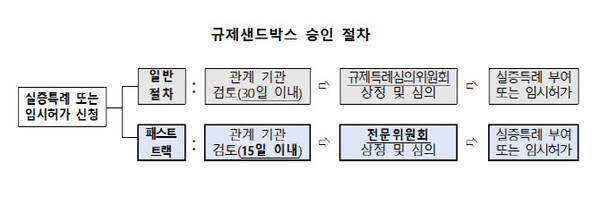 우선 기존에 규제샌드박스 승인을 받은 신제품이나 서비스와 내용, 방식 등이 유사하거나 동일한 경우에는 승인 절차를 과감하게 간소화하여 신속하게 사업화하도록 개선한다.