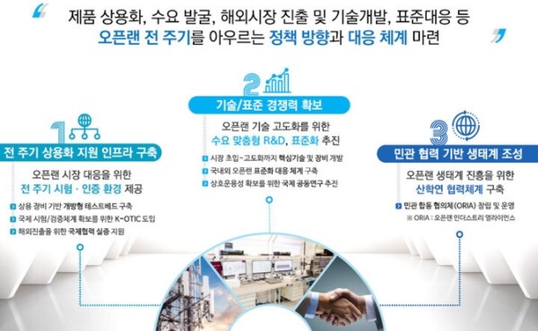 정부는 기술 표준 경쟁력 확보를 위한 전주기적 지원을 통해 국내 기업의 시장 진출을 돕고 오픈랜 종합 솔루션 확보에 나선다는 방침이다.