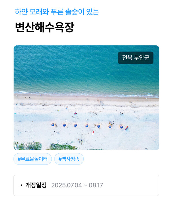 한국관광공사와의 협업으로 이동 데이터뿐만 아니라 사진과 관광정보, 올해 각 해수욕장 개장일 등 풍부한 정보를 제공한다. 각 해변 인근 명소, 맛집 등 인기 방문지 정보도 확인할 수 있다.