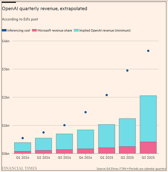 [디지털투데이 이윤서 기자] 오픈AI는 재무제표를 공개하지 않는 기업 중 하나다. 이 때문에 테크 전문가 에드워드 지트론(Edward Zitron)이 협력사인 마이크로소프트(MS)의 실적 자료를 분석해, 오픈AI가 실제로 어느 정도의 수익을 내고 있으며 챗GPT 같은 인공지능(AI) 서비스의 '추론'(inference)에 얼마나 많은 비용을 쓰고 있는지 역추적한 내용이 화제를 모으고 있다.